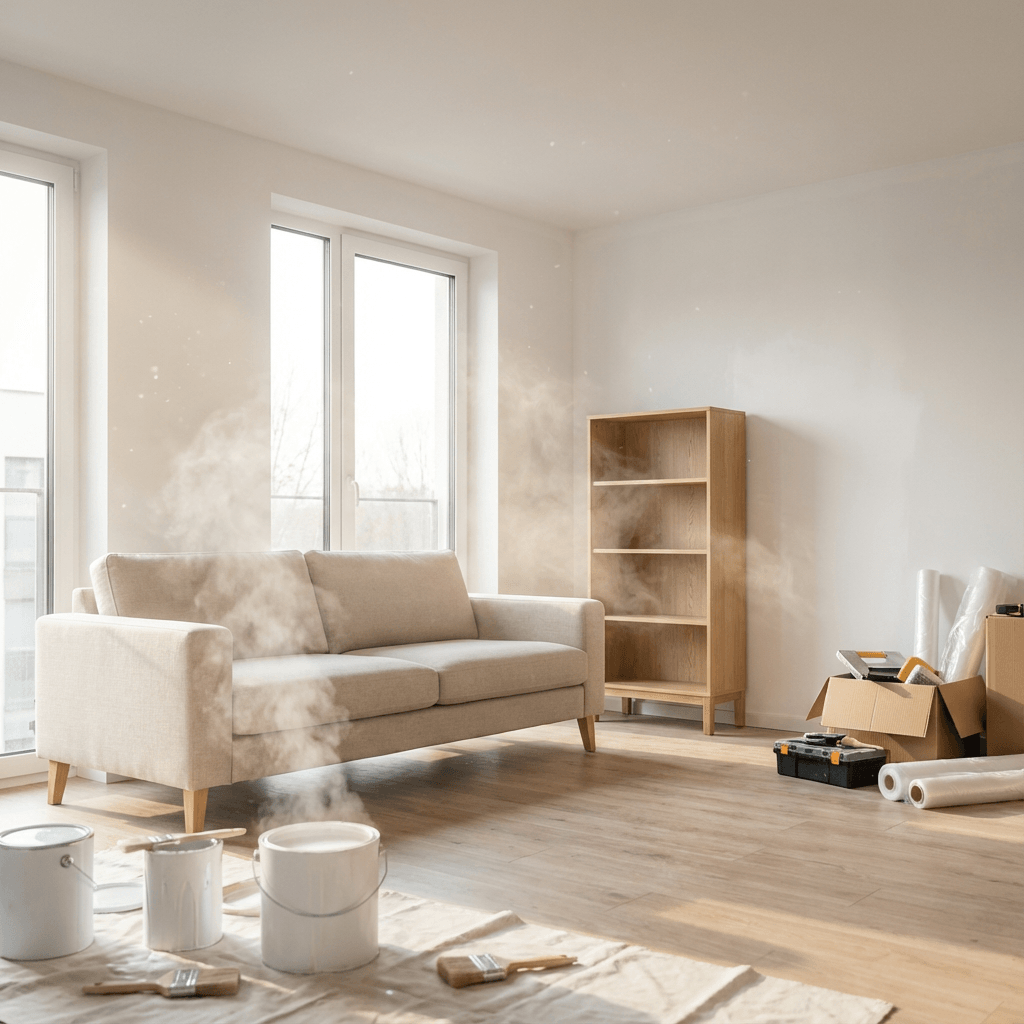 Erste Symptome treten häufig nach Renovierungen, Möbelkauf, Sanierungen oder einem Neubaubezug und besonders häufig bei Fertighäusern auf.